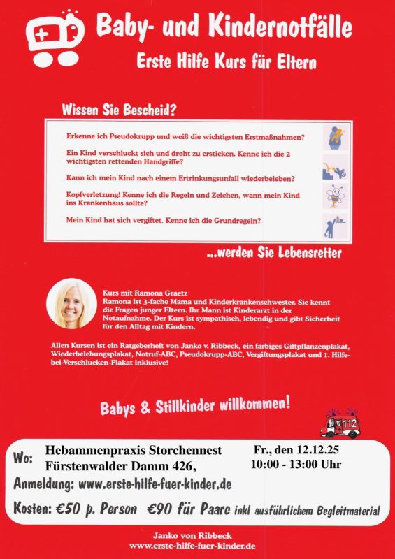 Babys erstes Jahr – Hausapotheke für kleine Wehwehchen Von Fieber bis Bauchweh: Erfahre in diesem zwei-stündigen Workshop, welche Mittel für Dein Baby sicher sind, wann Hausmittel genügen und wann ein Arztbesuch nötig ist, damit Du bestens vorbereitet bist.